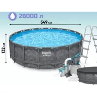 семейный, каркасный, круглая форма, 26000 л, 549*549*132 см, фильтр-насос в комплекте. Есть широкий выбор оригинальных аксессуаров для бассейнов. От химии и сачков до тентов.