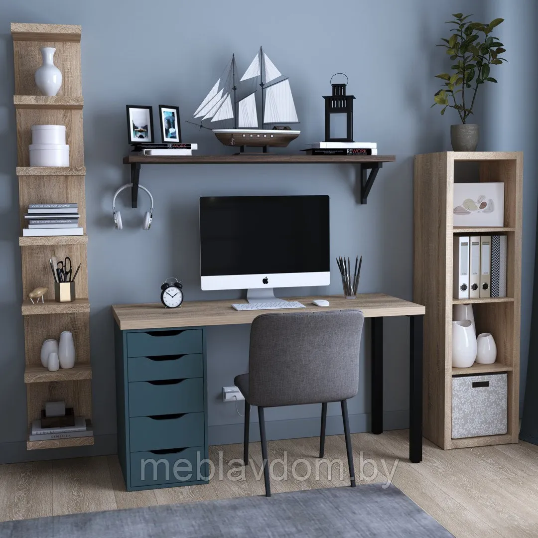 Цветовое исполнение: дуб беленый/серо-бирюзовый/черный.