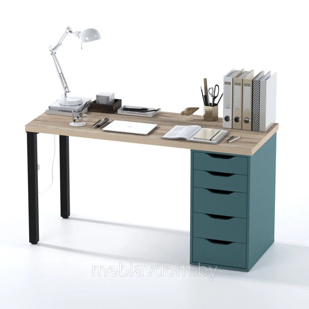 Стол письменный Ингар 2/5Т (дуб беленый/серо-бирюзовый/черный)