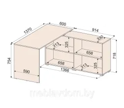 Габаритные размеры стола: 754х1514х1370 мм. (ВхШхГ).