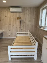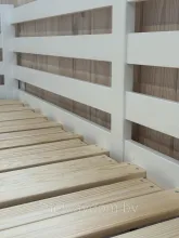 Изготовленная из массива сосны и покрытая белой эмалью на водной основе, кровать отличается высокой прочностью, долговечностью и безопасностью. Белое покрытие защищает поверхность от повреждений и царапин, подчёркивая естественную текстуру дерева и продлевая срок службы изделия. Кровать Ф-141.20 легко впишется в светлые интерьеры, добавляя в них свежести и лёгкости.